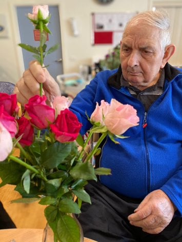 Carrum Downs residents recently celebrated International Flower Day; creating floral arrangements to be enjoyed throughout the home and pressing flowers to make cards and personalised laminated labels. Dieter loves gardening and he created a beautiful display of cut roses.